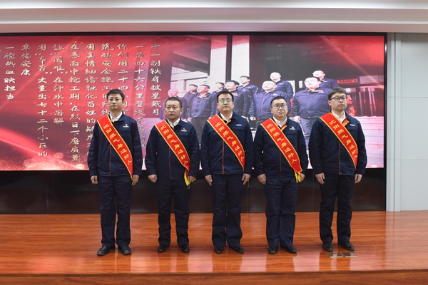 工程四組團(tuán)隊(工程管理部):以集體智慧完成多項重點工程,為沈城的管網(wǎng)改造工程貢獻(xiàn)力量。集團(tuán)黨委副書記、工會主席馮民為其頒獎。